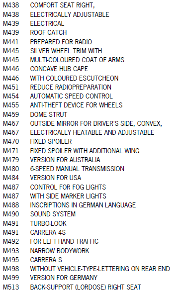 Porsche 911 993 Equipment Option, Paint & Interior codes model year 1996, 1997, 1998 including X & Y codes, (1995 Codes from PET follow below).**